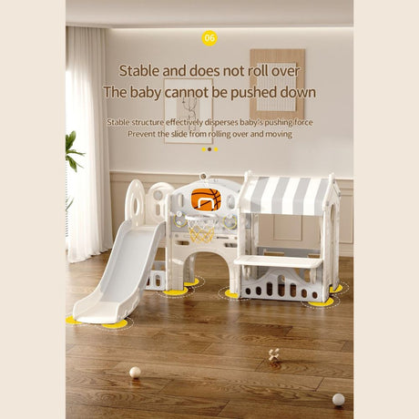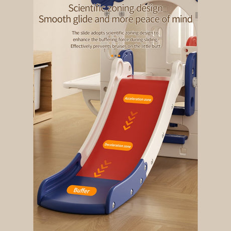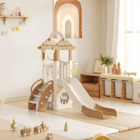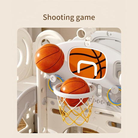 Cute Bear Kids Slide with Swing & Basketball Hoop - Indoor Play Set