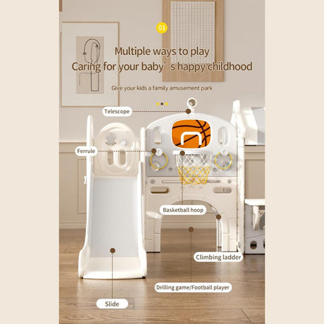 Kids Indoor Tent Slide & Climbing Playset with Basketball Hoop & Telescope