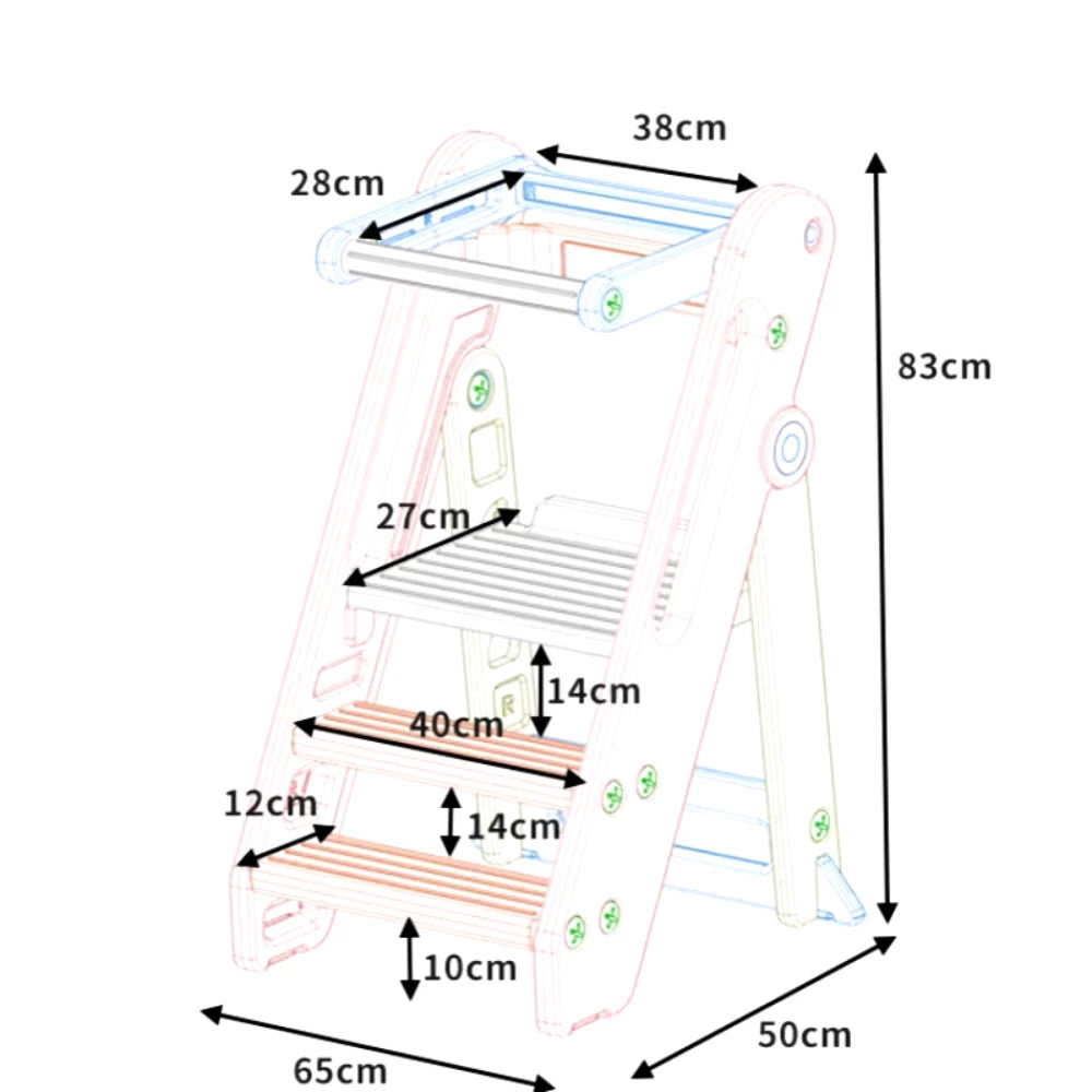 Encourage independence and safe participation with the Baby Learning Stool Tower - Adjustable. This stable, adjustable stool allows toddlers to reach counters and workspaces with ease, making it perfect for cooking, cleaning, or crafting together. Designed with non-slip mats and sturdy handrails, this tower provides a secure environment for your little helper, enhancing confidence and hands-on learning opportunities.